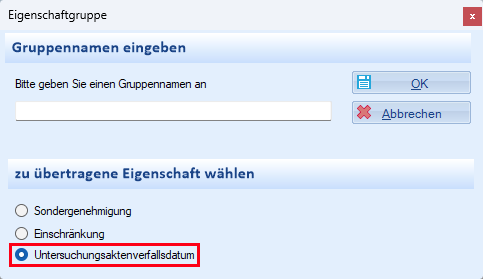 Wenn Sie eine neue Gruppe über die Schaltfläche Hinzufügen erstellen, so können Sie hier die Option Untersuchungsaktenverfallsdatum auswählen: