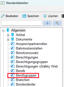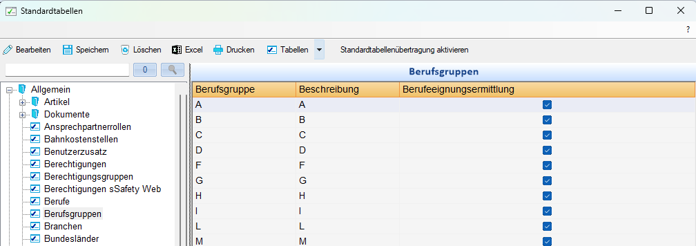Nur in SAmAs Enterprise Hybrid und SAmAs.one verfügbar.Es wurde eine neue Standardtabelle Berufsgruppen (zu finden unter Daten -> Standardtabellen -> Allgemein) implementiert.